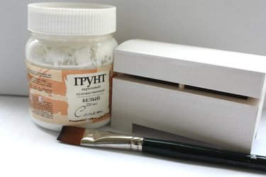 Приступаем к работе: Шкатулку обработайте наждачной бумагой, если поверхность не очень ровная. Удалите пыль. Широкой кистью нанесите белый грунт снаружи и внутри шкатулки. Дайте высохнуть. |